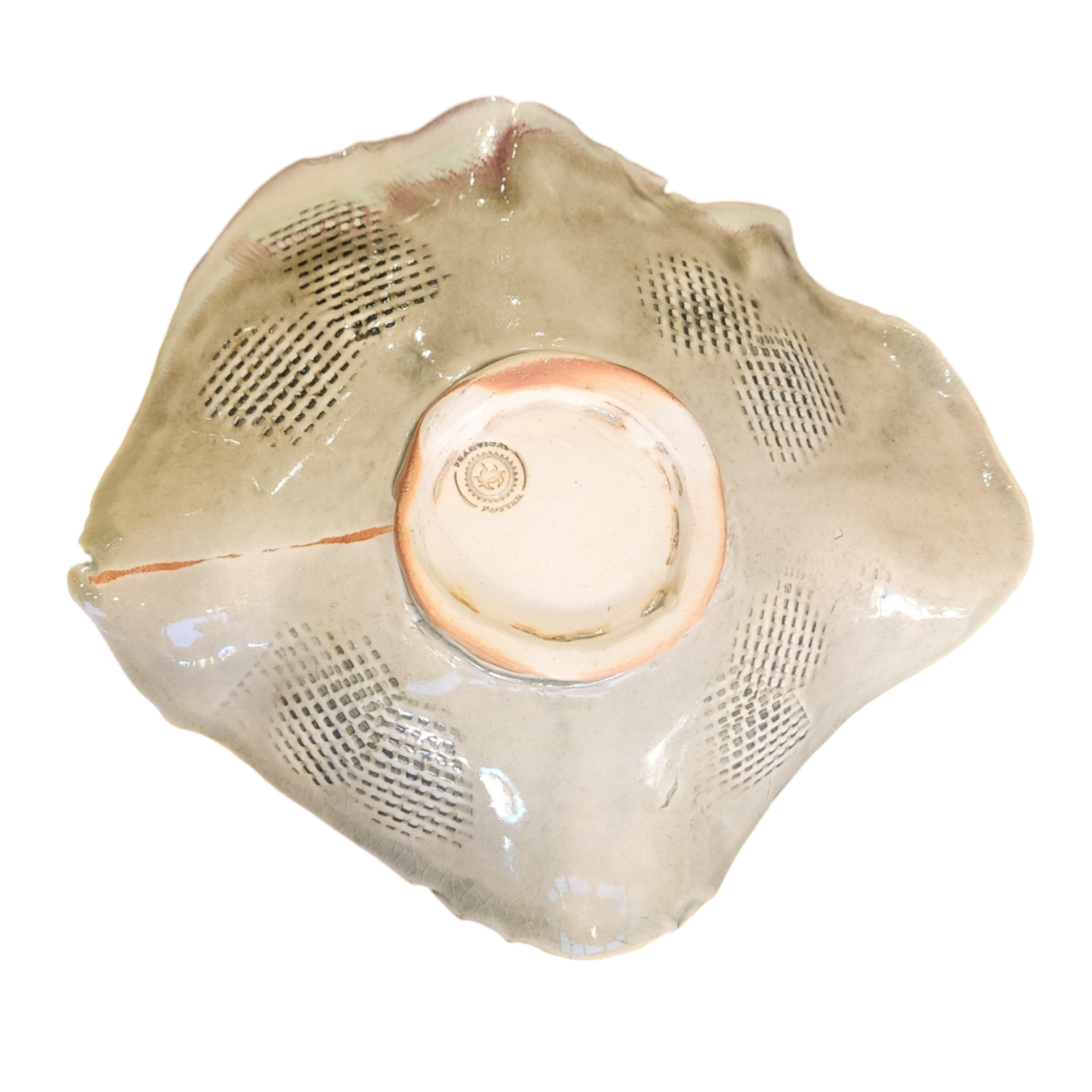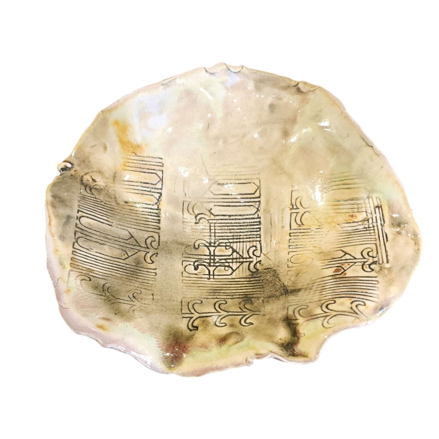 Soda firing - Atmospheric firing - gas and chemicals combined to make “soda’ produce the effects on the work. In this firing you can have beautiful results without glazing a piece. You can also use glaze to color your pots, but the introduction of soda yields to chemical reactions/combinations that yield the unpredictability of colors and patterns. Soda is added at intervals once kiln has reach 1800 degrees.