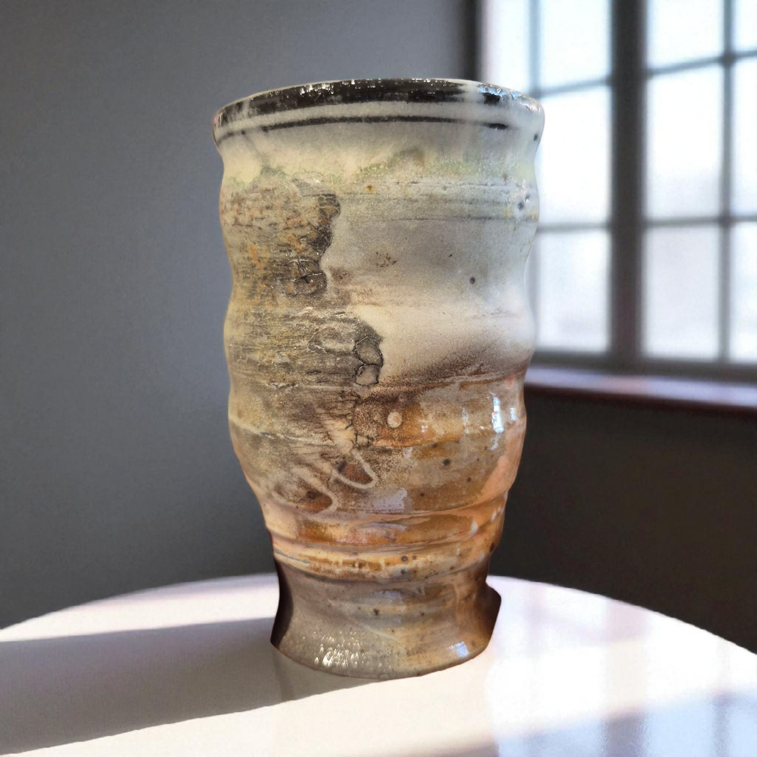 Soda firing - Atmospheric firing - gas and chemicals combined to make “soda’ produce the effects on the work. In this firing you can have beautiful results without glazing a piece. You can also use glaze to color your pots, but the introduction of soda yields to chemical reactions/combinations that yield the unpredictability of colors and patterns. Soda is added at intervals once kiln has reach 1800 degrees.